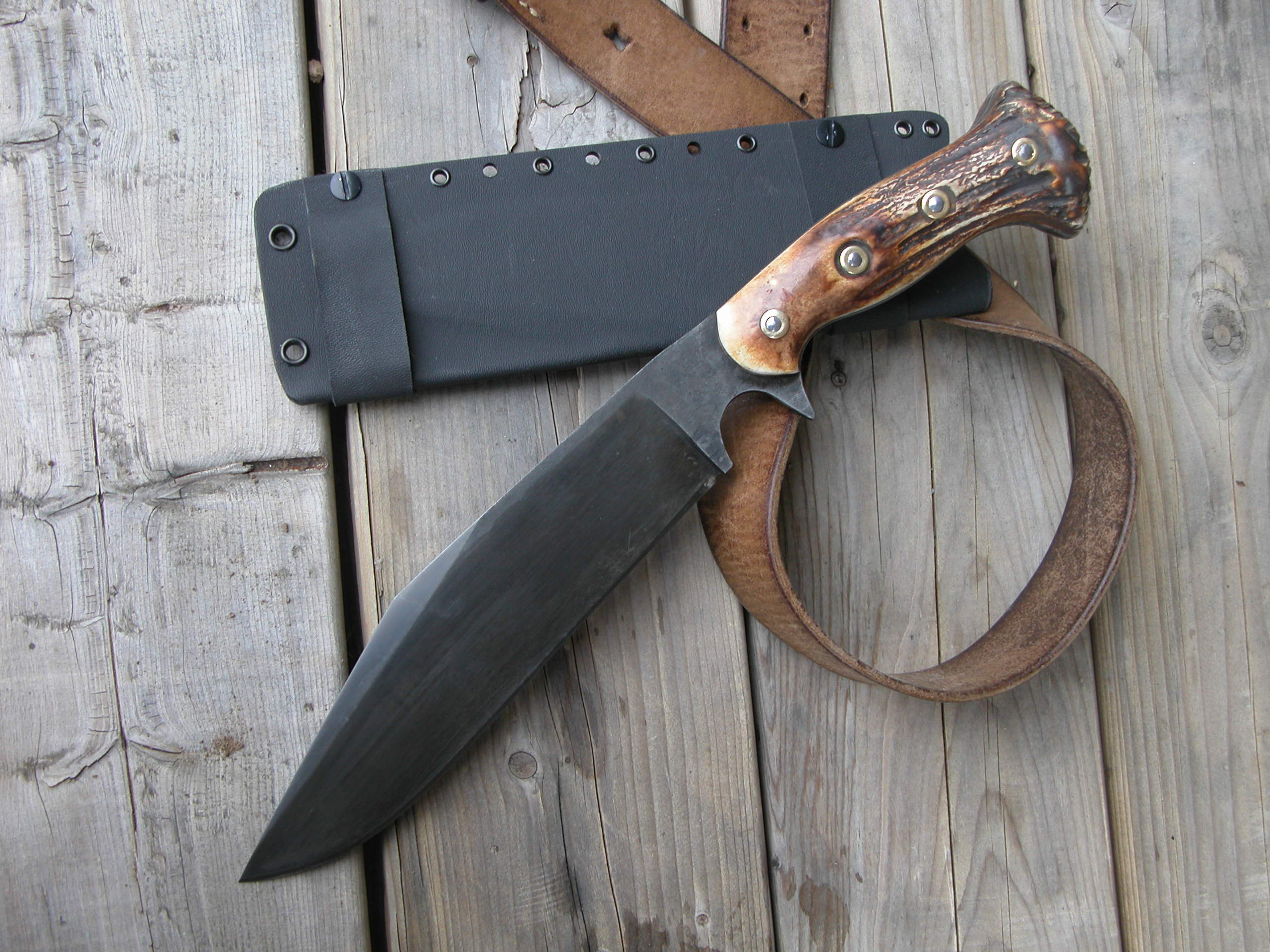 Très grand couteau dit "de camp" à la lame massive et affilée, pour service intense.